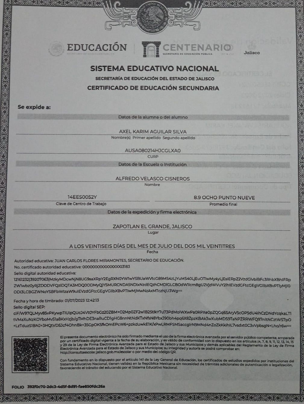 Nombre de la institución: Escuela Secundaria Fóranea 5 "Alfredo Velasco Cisneros" (3° secundaria)
